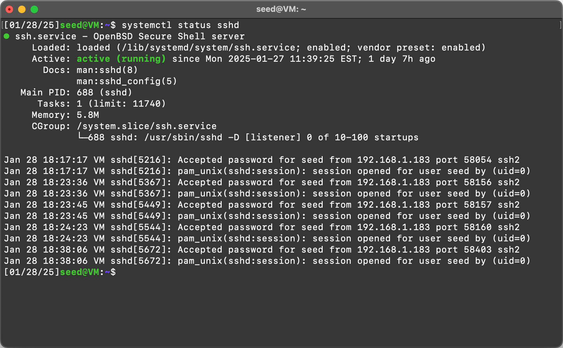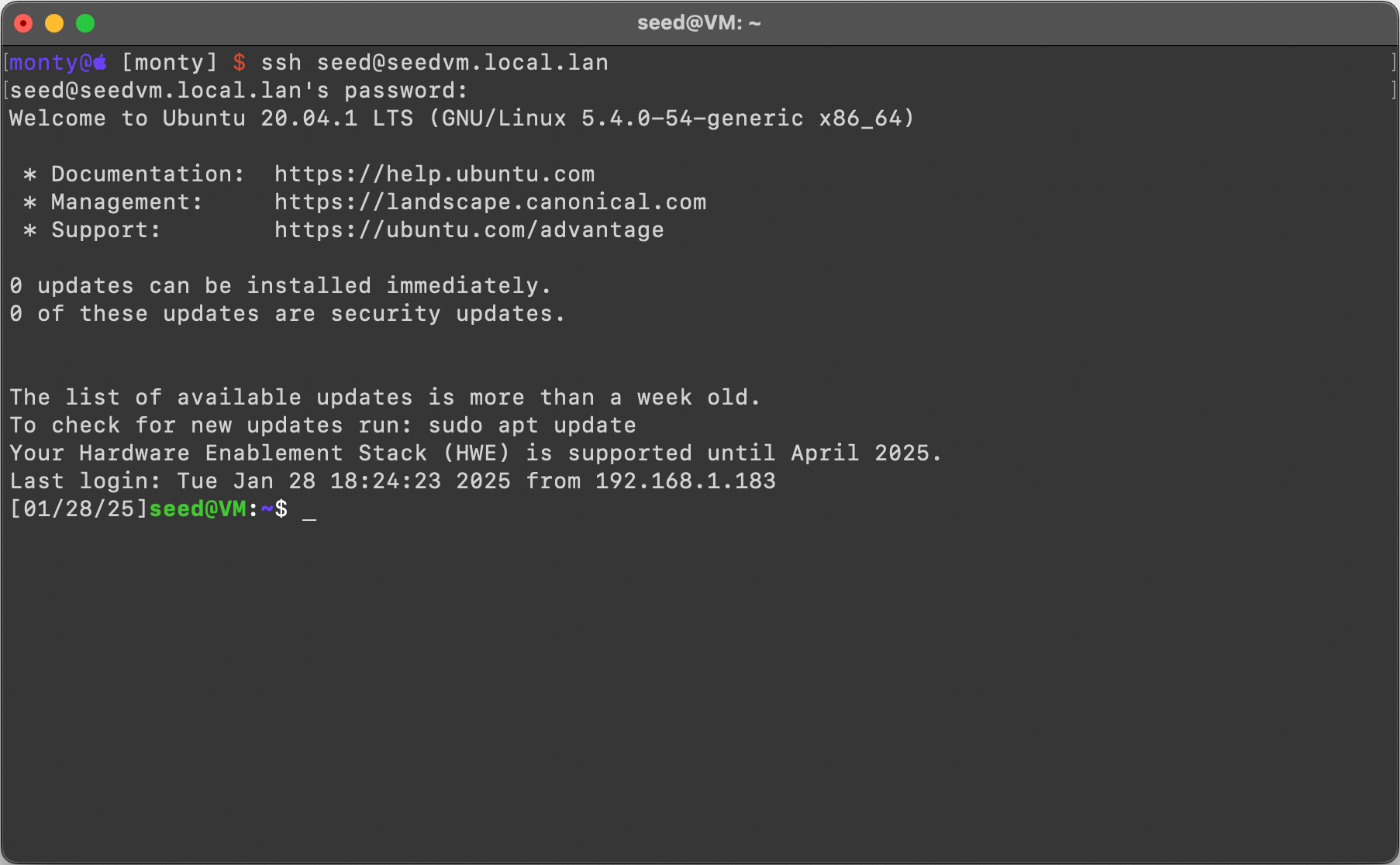 ssh seed@seedvm.local.lan