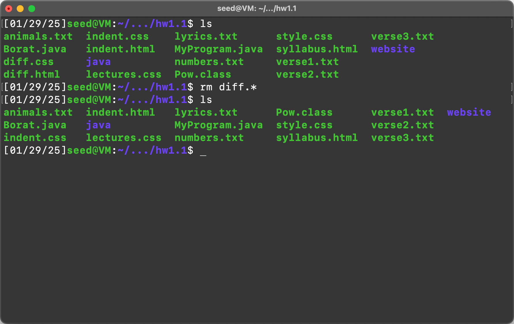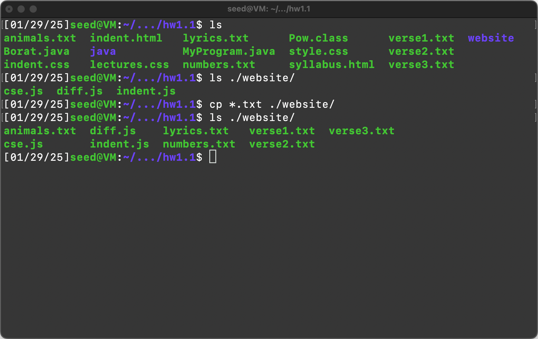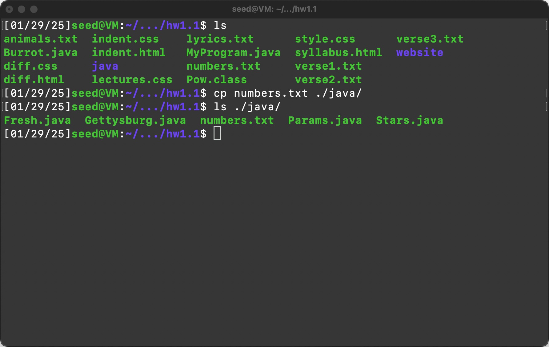 Item 1: List the contents of the “hw1.1” directory using the “ls” command