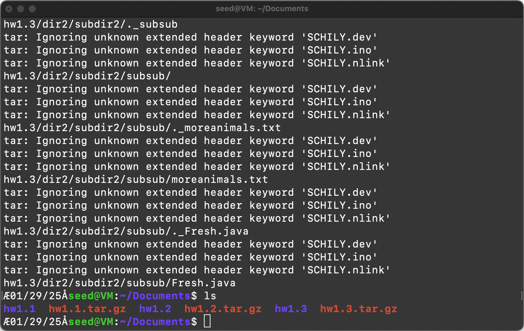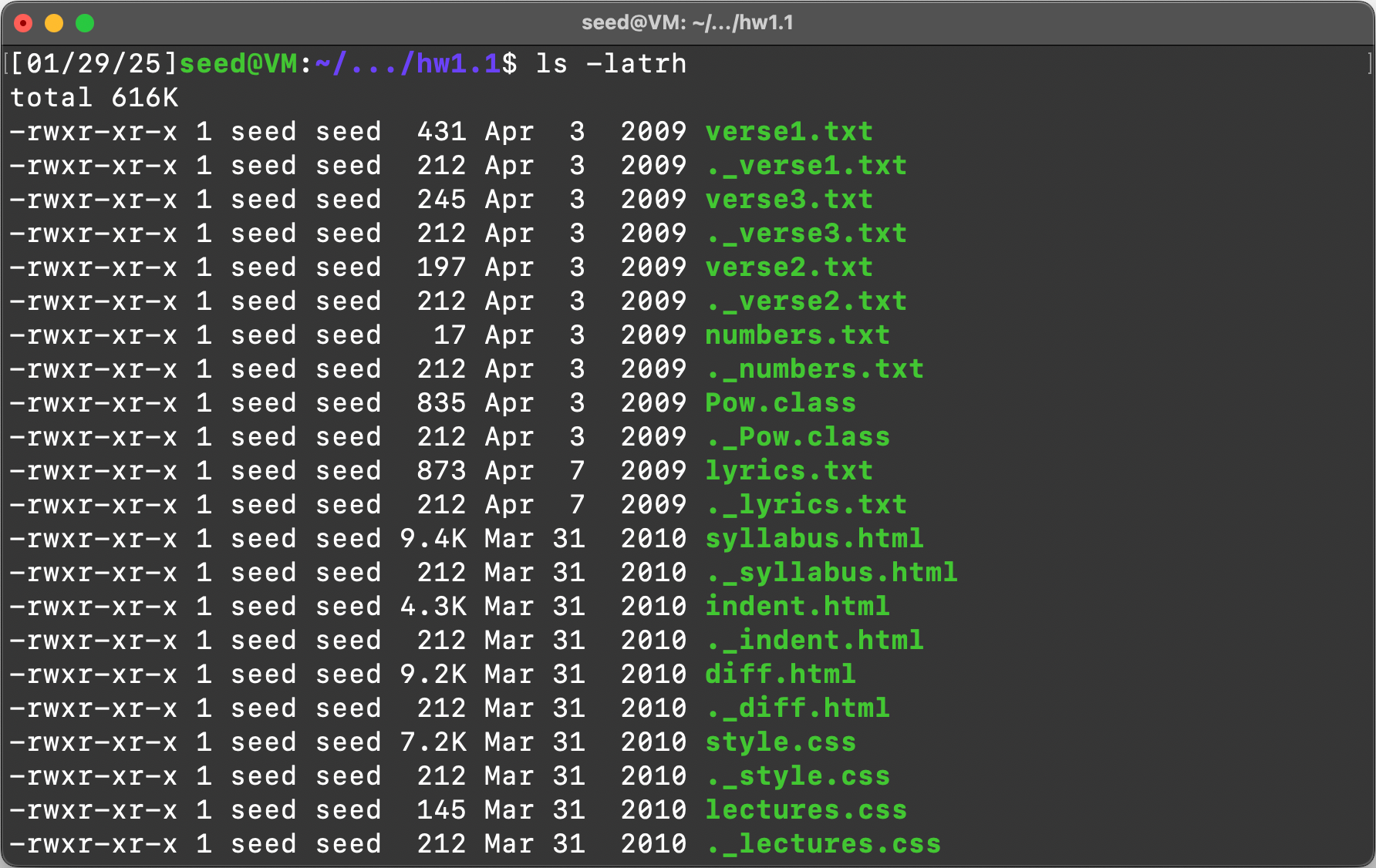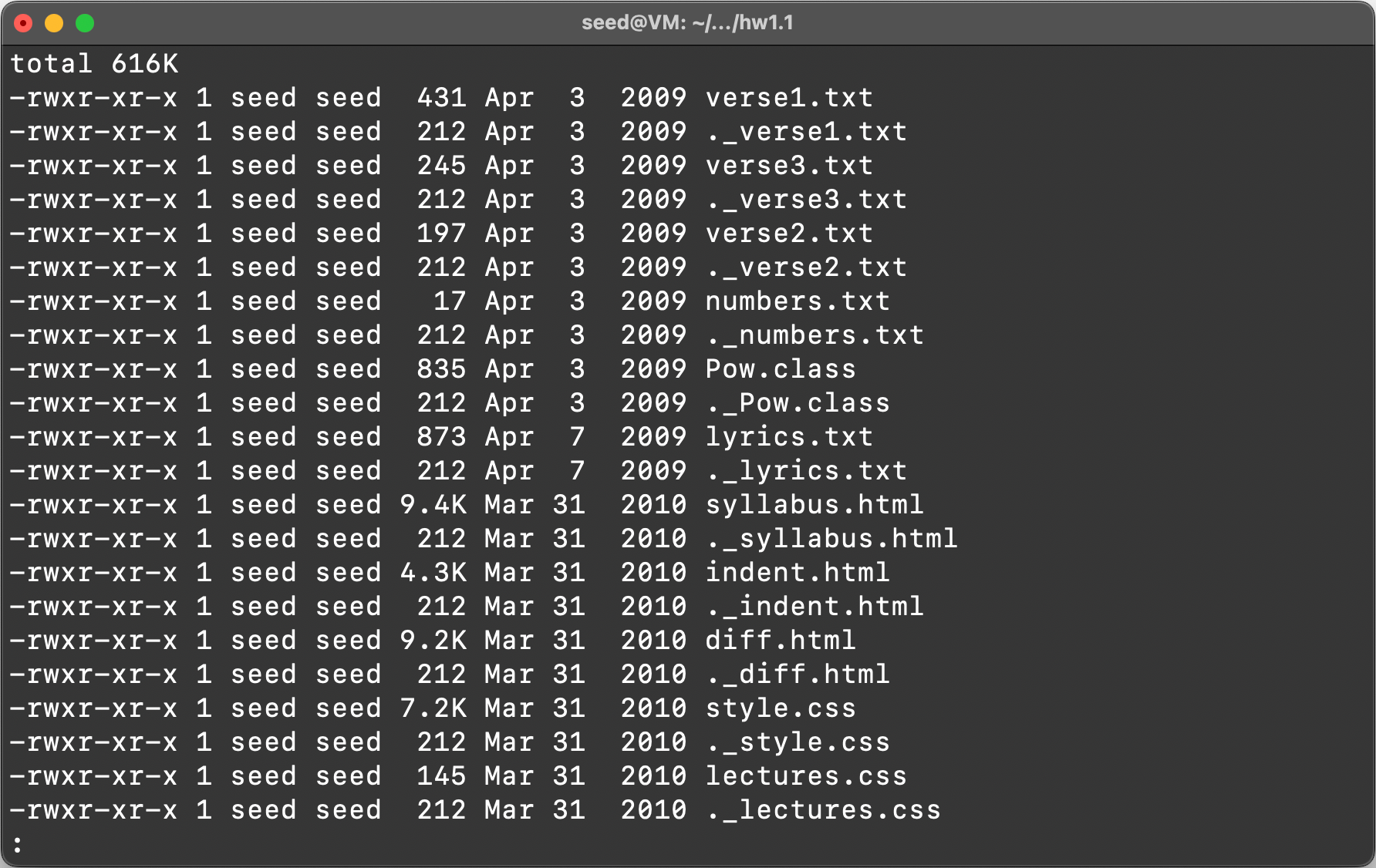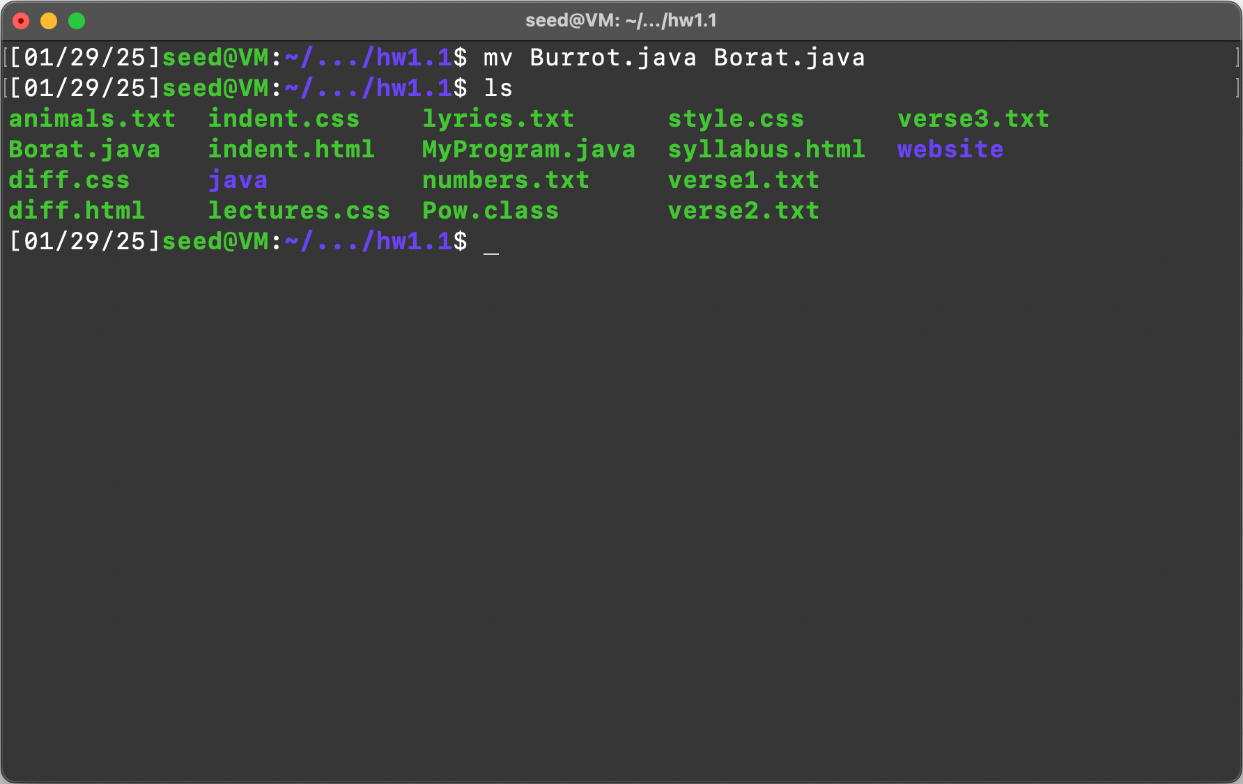 Item 1: List the contents of the “hw1.1” directory using the “ls” command