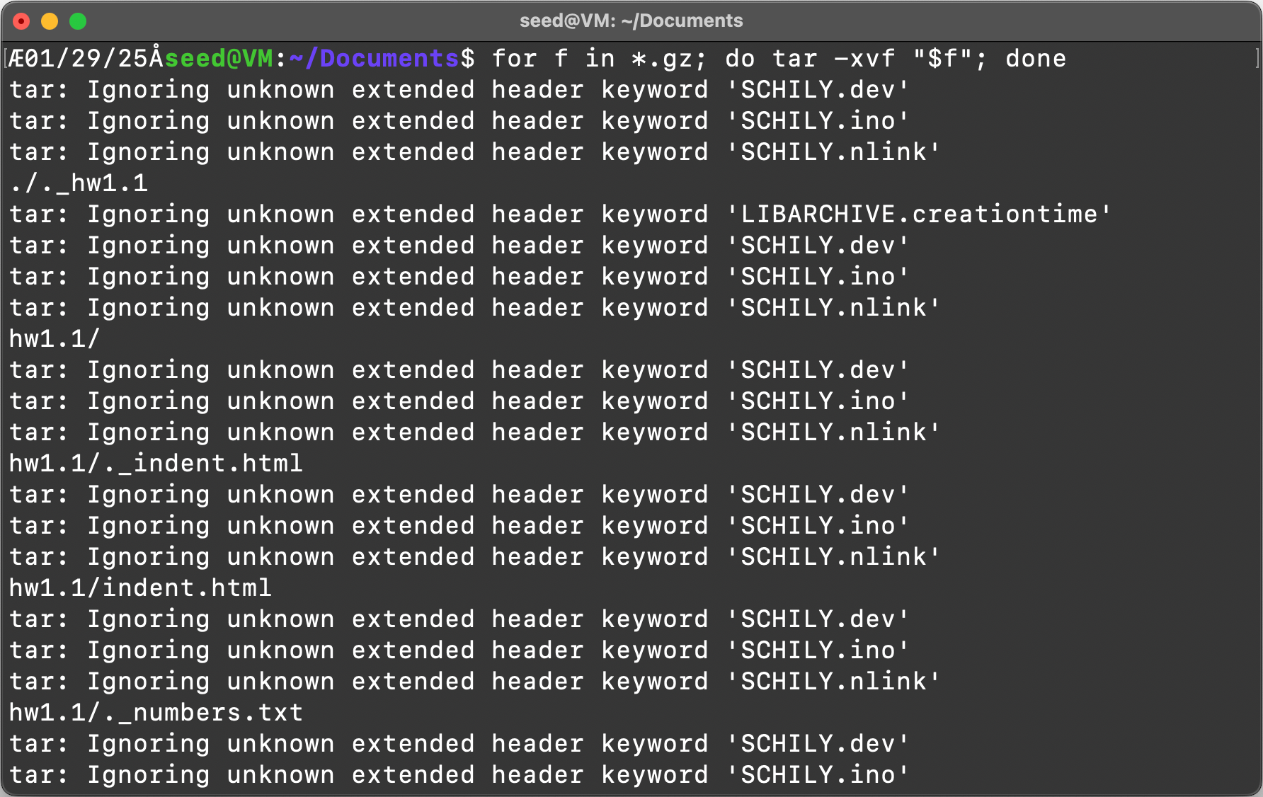 for f in *.gz; do tar -xvf “$f”; done