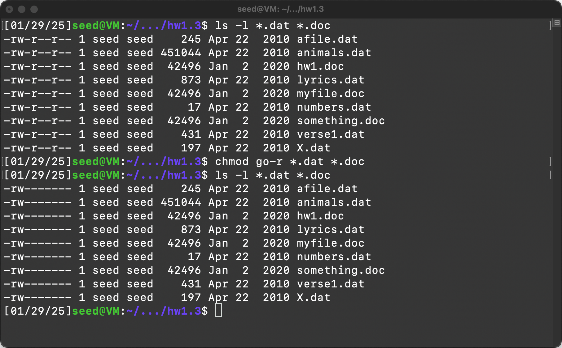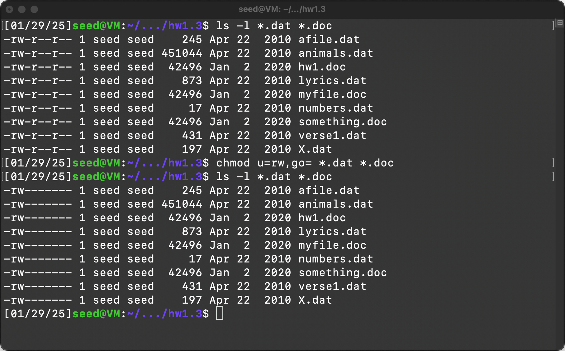 chmod go-r *.dat *.doc