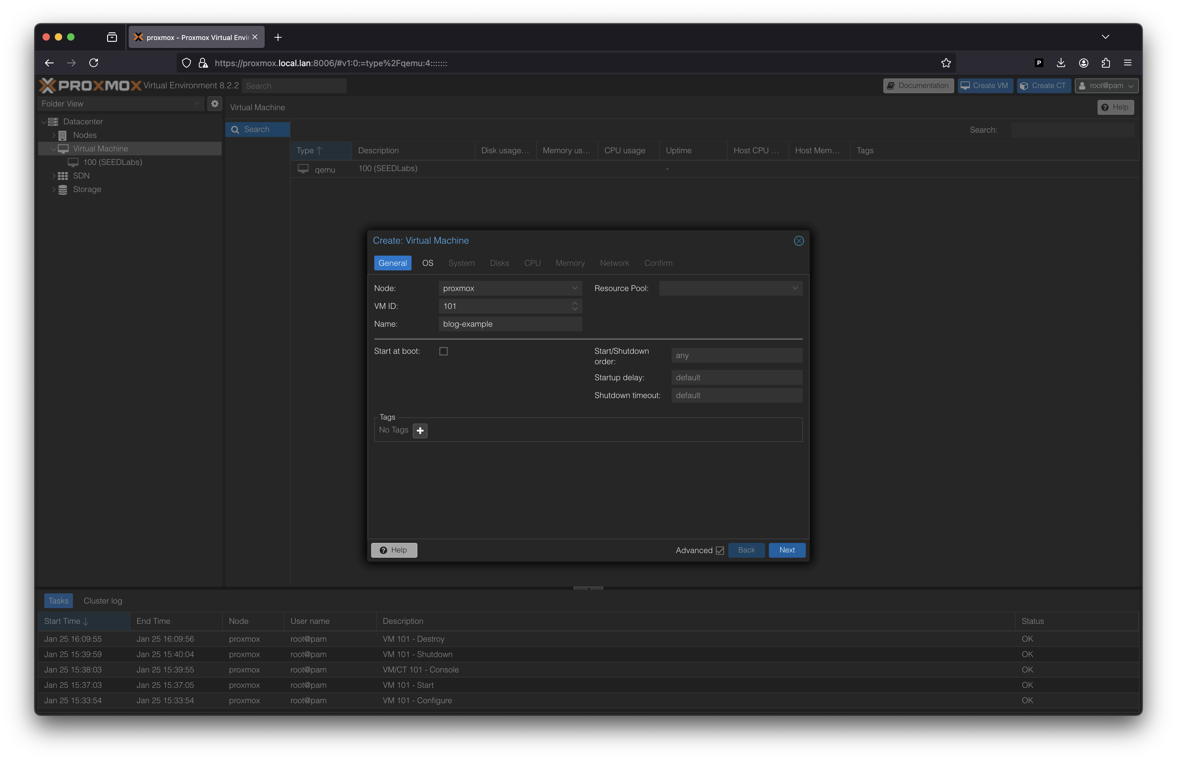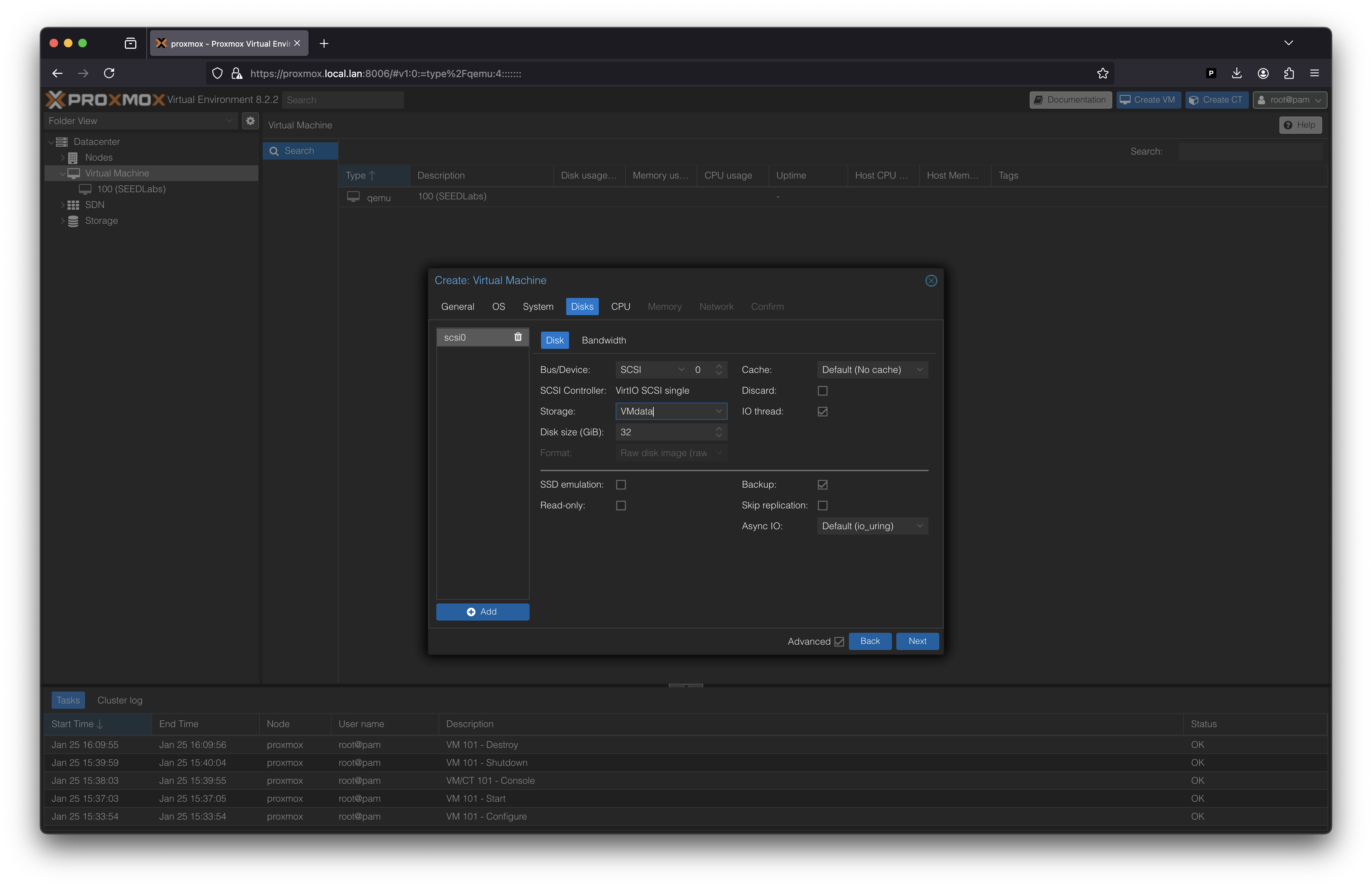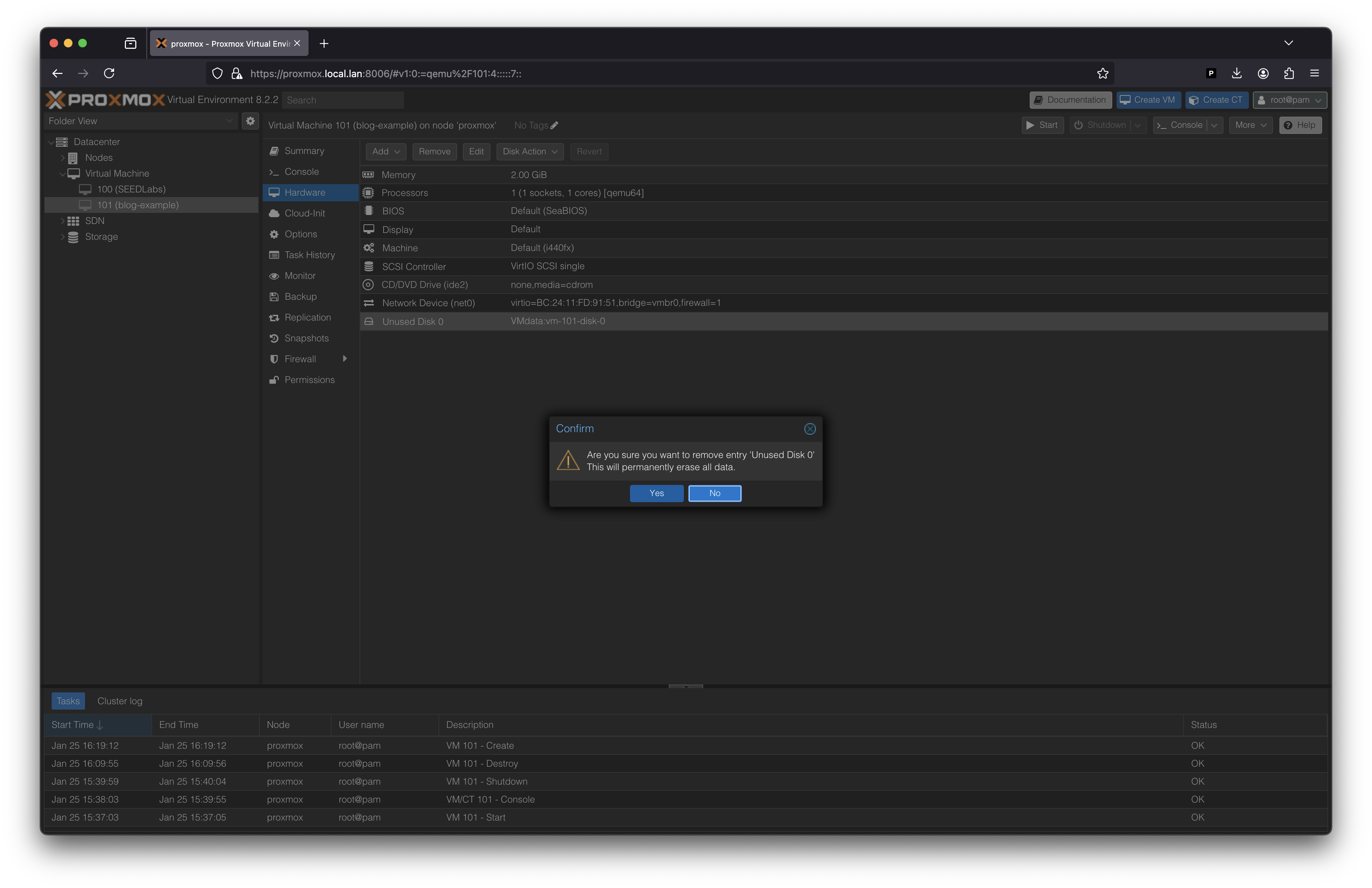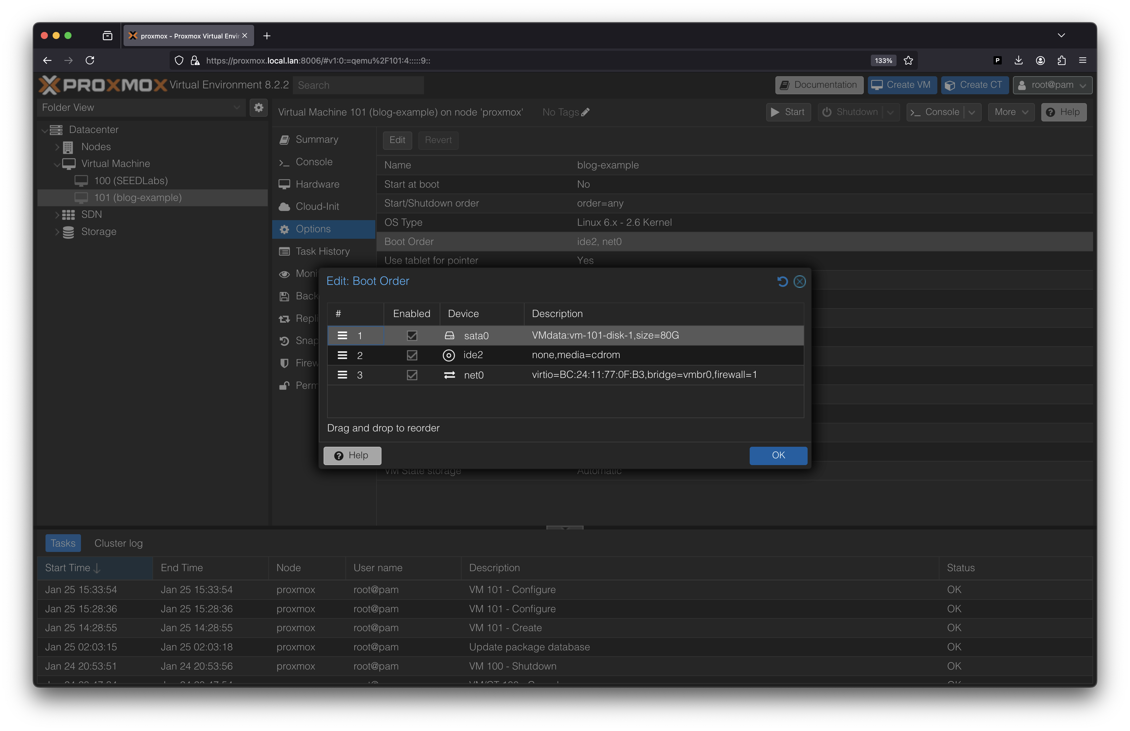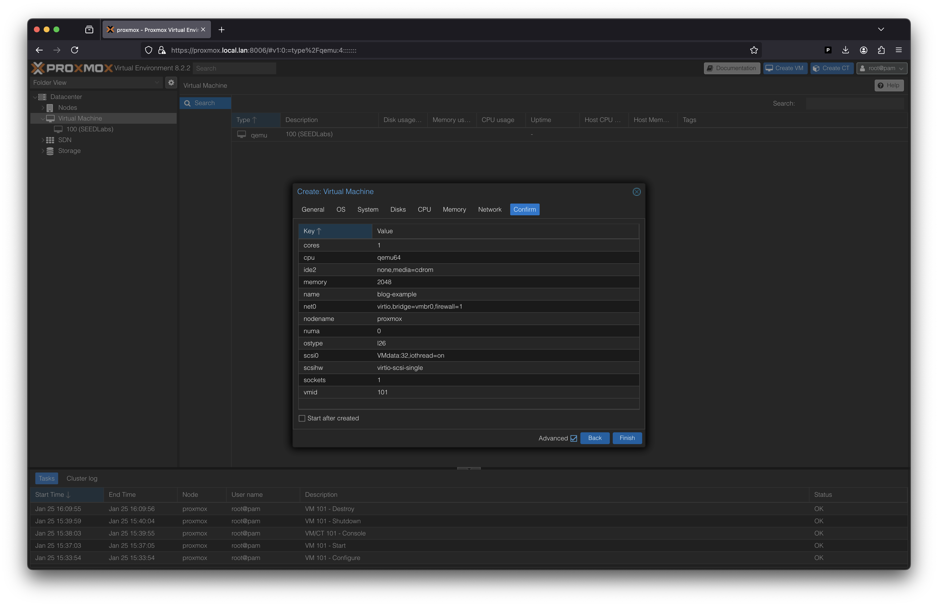 confirm your VM settings. Note your vmid value here, mine is 101.
