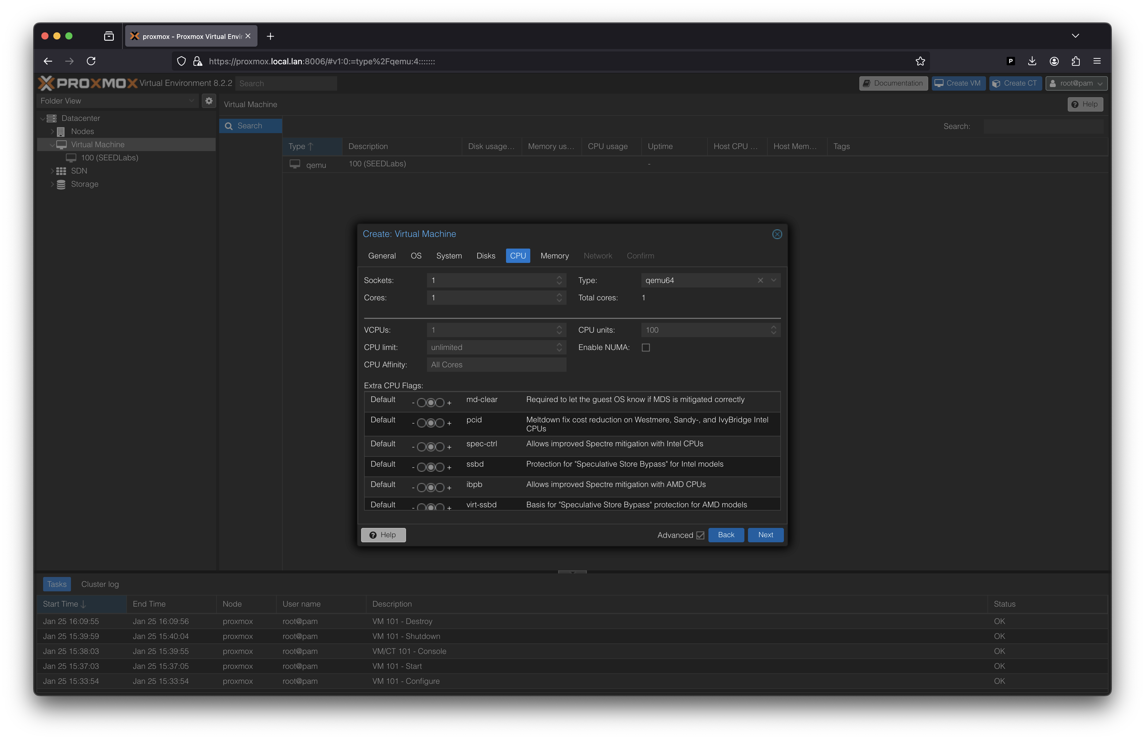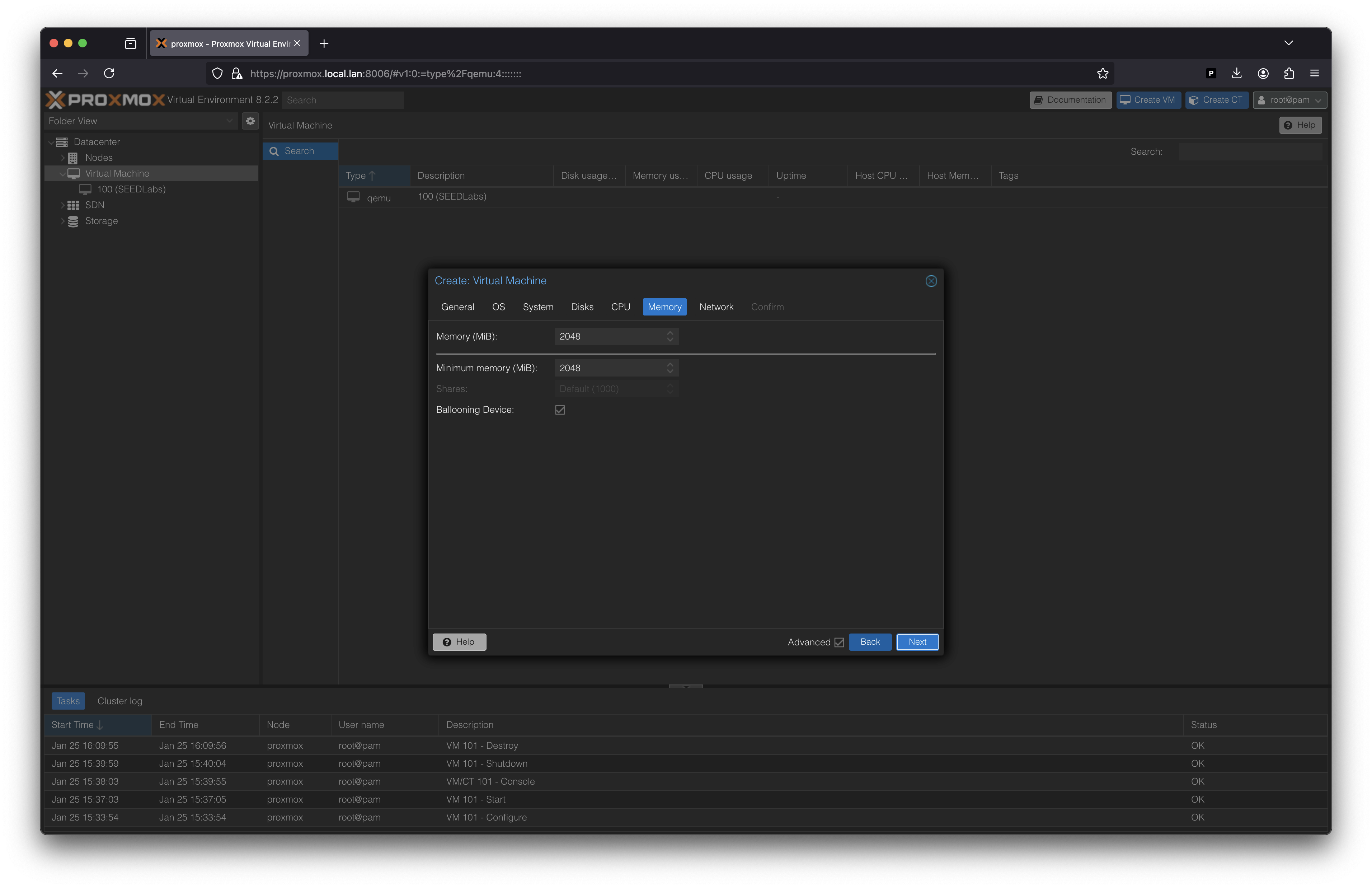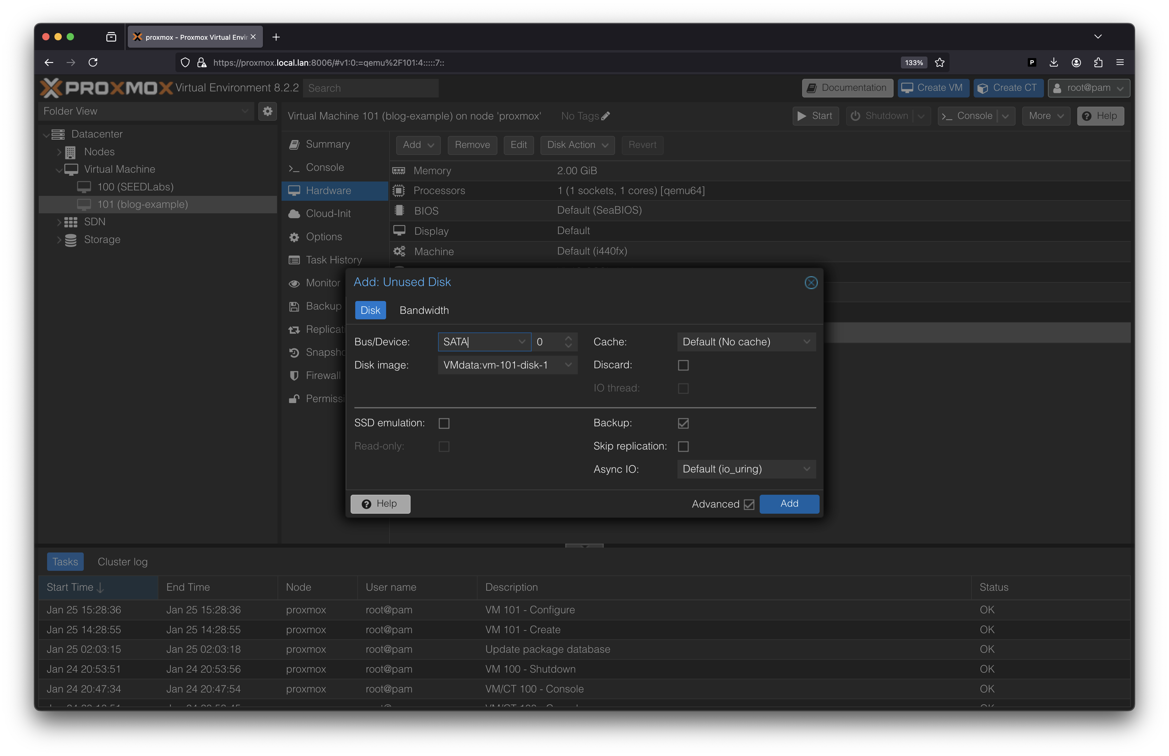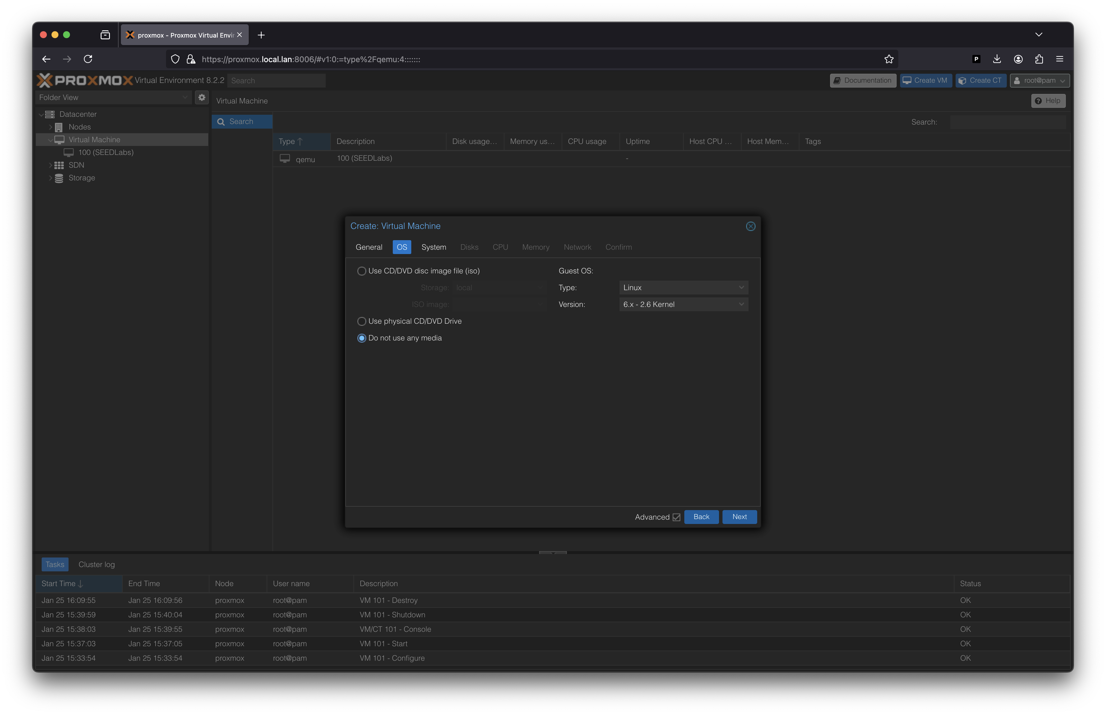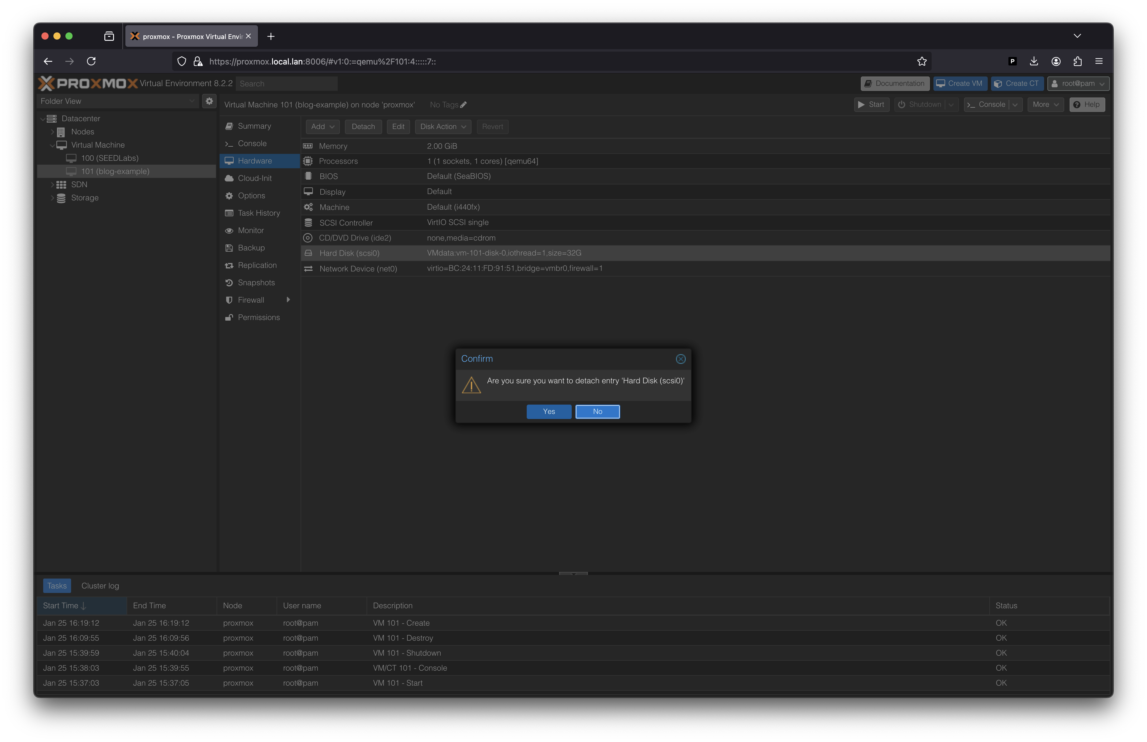 confirm your VM settings. Note your vmid value here, mine is 101.