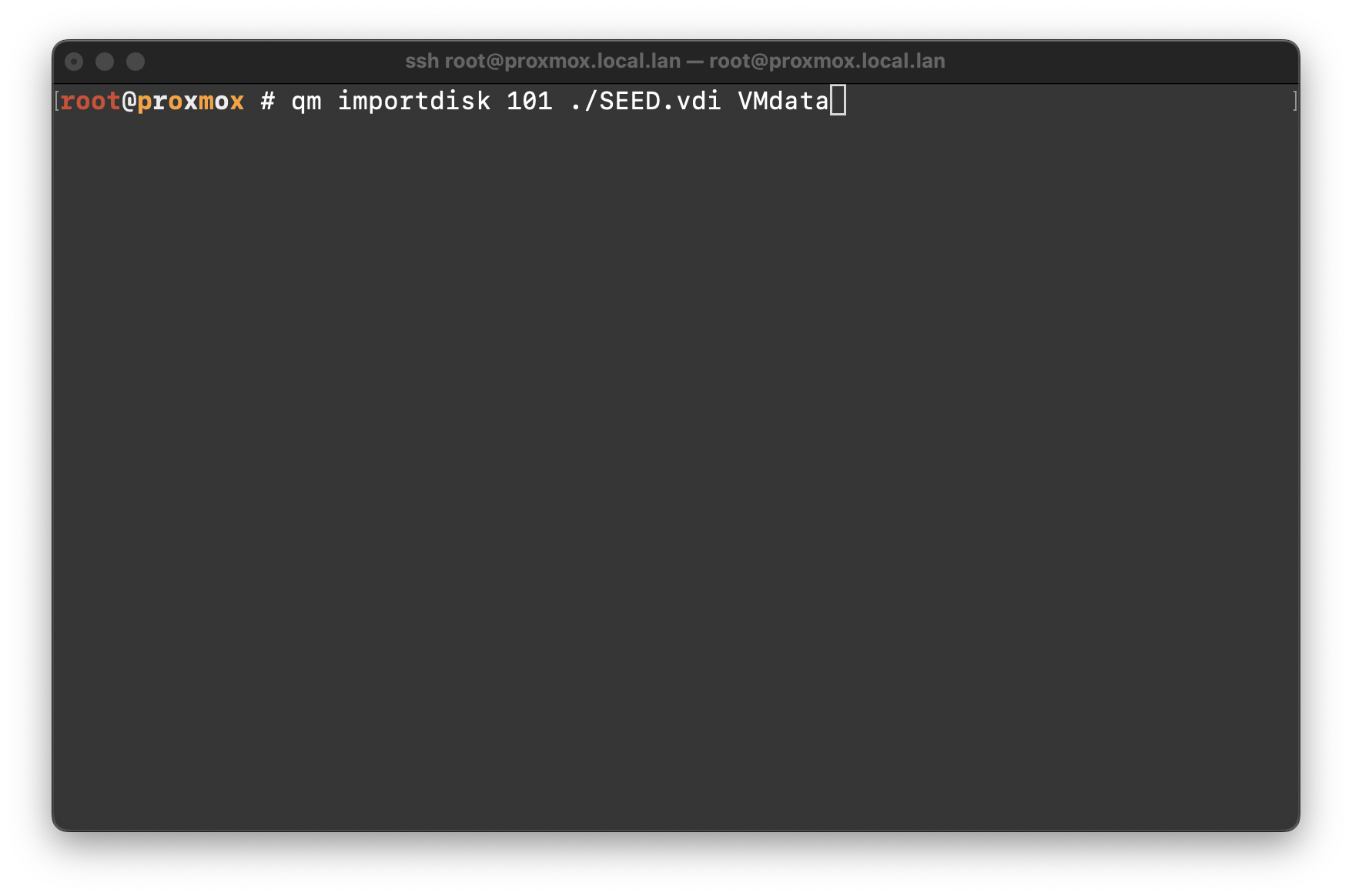 We’re going to use qm to set the disk to our VDI image. So in the shell for the Proxmox host: